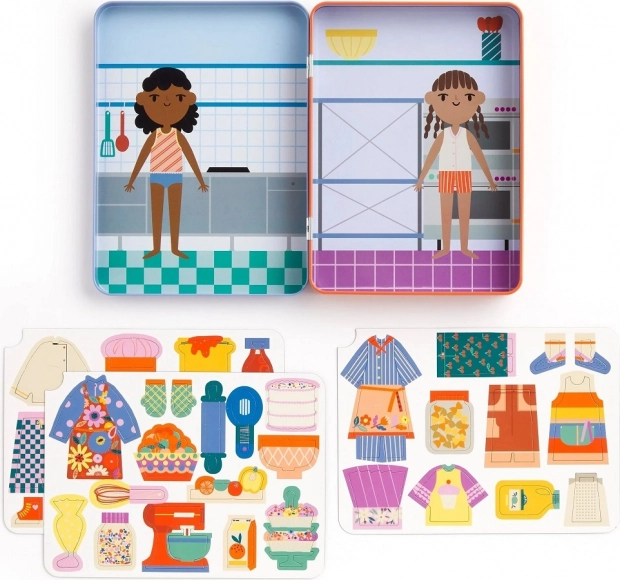 The MUDPUPPY I Can Be a Chef magnetic set brings kids hours of imaginative fun. Inside the metal, easy-to-clean tin, you’ll find two colorful kitchen scenes and more than 40 magnetic pieces of outfits and kitchen accessories. Children can mix and match characters, create their own stories about cooking and baking, and develop their imagination.