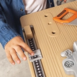 A complete foldable workshop for little DIYers with 100 accessories and 3 work zones: a mechanical workshop with a bench, a painting station with a sink, and a plumbing zone with pipes. Includes a drill, vice, circular saw, and a buildable car. Thanks to the foldable side panels and wheels, it’s easy to move and supports creativity, fine motor skills, and hand–eye coordination.