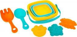Our set doesn’t take up much space and is easy to carry, because it’s made of soft, flexible plastic and the bucket can be folded.