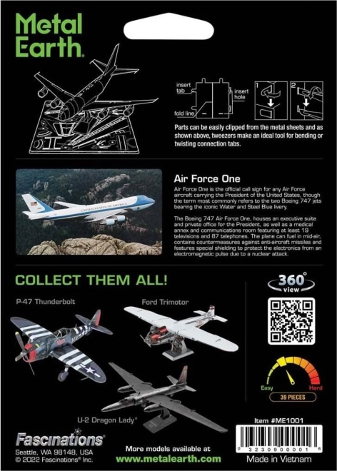 A set for creating a fascinating metal 3D model. Building a METAL EARTH puzzle requires patience and skilled hands. The end result fully rewards the effort. These miniature replicas make impressive, eye-catching decorations. From square sheets of steel, detailed and captivating models will take shape in your hands. The authentic look of METAL EARTH 3D puzzles is achieved thanks to detailed laser engraving. Tools are not included. WORK PROCEDURE: Remove individual parts from the metal sheets; if needed, use small snips (not included). The pieces are joined using locks formed by a tab and a hole. Bend the tab with small needle-nose pliers (not included) and gradually connect all the locks until a very realistic masterpiece emerges!