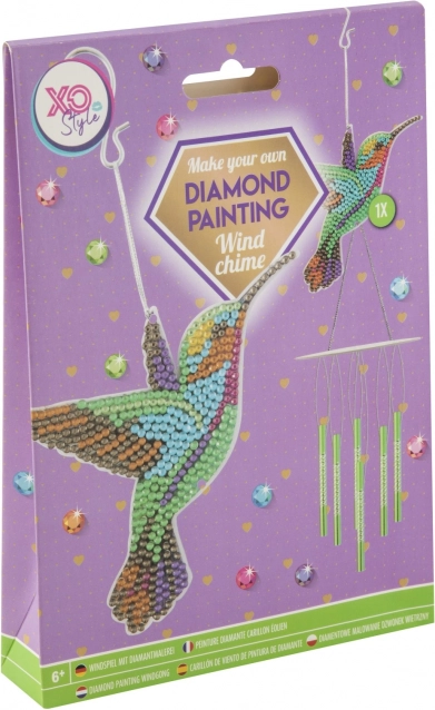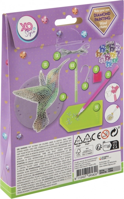 Discover the magic of diamond painting and make an original hanging wind chime with a hummingbird motif. Thanks to the pre-applied adhesive backing and the simple gem application, crafting is easy, low-effort, and ideal for relaxation and creative growth.