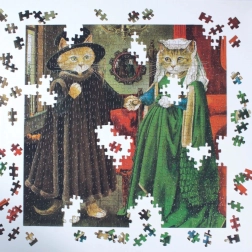 Enjoy fun puzzling with an original design by feline artist Susan Herbert—a parody of Van Eyck’s iconic masterpiece. This high-quality square 500-piece puzzle from Galison will delight lovers of art and cats alike, offering a format of approximately 51 × 51 cm for comfortable assembly. A great choice for relaxation and a perfect gift for anyone who appreciates humor, elegance, and meticulous craftsmanship.