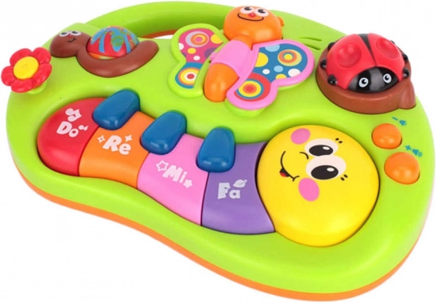 An interactive piano for children that, with its vivid colors, stimulates vision and encourages playful activity. Cheerful melodies spark interest in music and teach children to distinguish different tones and sounds from an early age. The sound and light effects bring fun and delight.