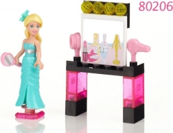 The Mega Bloks Barbie set is an ideal choice for young builders who want to dive into the world of Barbie and create their own scenarios. Each set includes a Barbie figure, accessories like a hairdryer and flowers, and several building blocks. Figures are made of plastic with movable arms and legs, while their clothing is made of soft rubber material. The hair of the figures is removable, adding more play options.