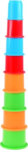The set includes 8 cups in bright colors that nest to save space. Supplied in a colorful gift box — a great birthday gift and a perfect first developmental toy.