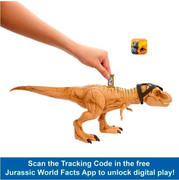 Head out on the hunt with the iconic T‑Rex in a desert biome design. The figure features detailed textures, poseable parts, and impressive roaring sound effects. Thanks to the removable tracking device and interactive elements, kids will enjoy hours of creative play.
