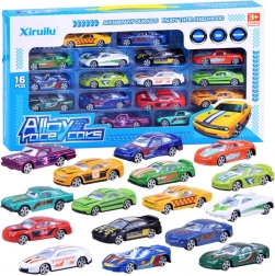 Discover the joy of racing with a set of 16 colorful die-cast cars on plastic chassis. Small, finely detailed models in modern, sporty, and retro designs will delight every young car fan. Ideal for home play, preschool, and racetracks.