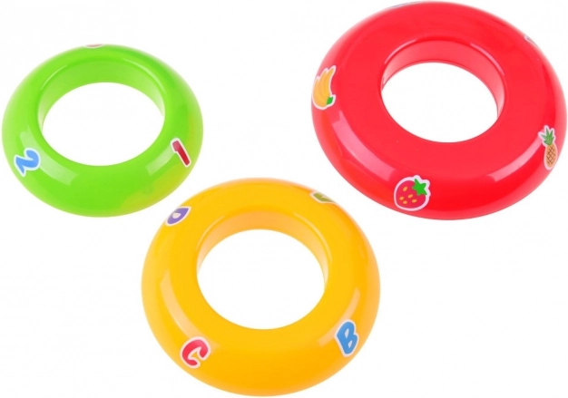 Stacking the colorful rings by size helps children practice manual dexterity, logical thinking, and color recognition.