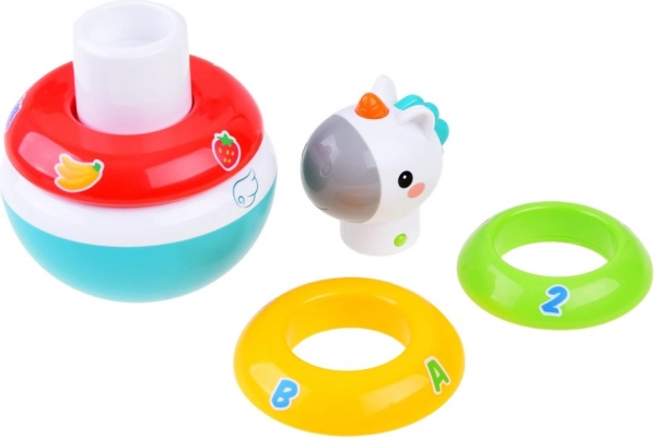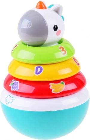 The stacking toy with unicorn offers several stages of play that stimulate children's senses. It is designed to grow with children and develop their motor skills and logical thinking.
