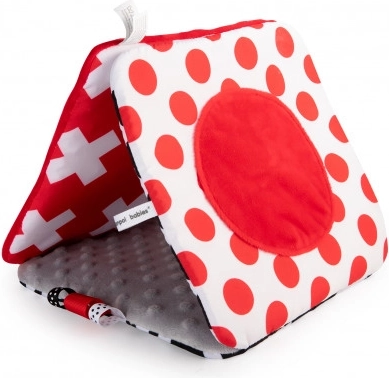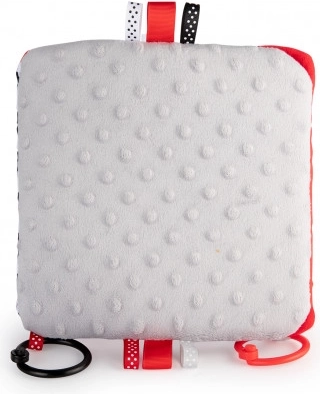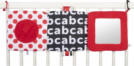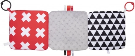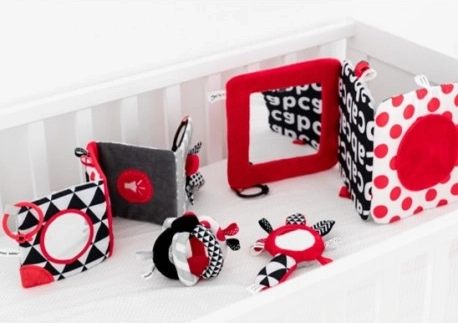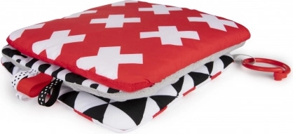 The contrast hanging mirror from the SENSORY collection is designed for the youngest babies. The toy can be easily attached wherever needed—stroller, crib, or car seat—and can be simply folded into a pyramid shape or unfolded like a book. This practical accessory features crinkly and squeaky elements and a mirror. High-contrast colors and varied material textures stimulate the development of a baby's senses. Learn more about the product in this video: https://www.youtube.com/watch?v=ODSDyoyN7l0 Why are sensory toys so important? A baby's vision is the least developed sense at birth. The darkness in the womb does not allow vision to fully develop prenatally. After birth, a baby's sight is blurry and hazy. Babies can only see outlines within 20–30 cm (8–12 in), large shapes, and elements of the environment. After about a month, they start seeing colors, initially red and black. Around three months, they begin to notice other vivid colors. At approximately six months, babies start seeing details in images and see much more clearly. By twelve months of age, a child’s vision is fully developed like an adult’s and becomes a great tool for exploring the world. Sensory toys from the new SENSORY collection help stimulate a baby’s vision and train the ability to focus attention from the first weeks of life. About the SENSORY collection: The sensory toy collection was developed for children up to one year old. During this period, the most significant changes occur in a child’s psychomotor development. Sensory toys respond to the current market trend focused on supporting development through play, allowing parents to stimulate visual development, practice focusing attention on an object, aim at and track objects with the eyes, and exercise dexterity and coordination. Instructions for use: Keep the toy clean. Washing instructions are on the product label. Hand wash at 30°C with a mild detergent. Check carefully before each use. Discard at the first signs of damage or wear. Before giving the toy to a child, remove all packaging elements to prevent choking and keep them out of children’s reach. Keep the instructions for future reference. The batch code is located on the packaging. The toy complies with the following certifications: ISO 9001, ISO 22716. The product is designed and approved in the EU.