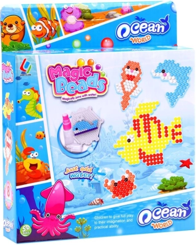 With this creative set of Magic Beads, children can create amazing pictures and 3D figures. It includes templates with simple patterns to help get started. After placing all the beads, just spray them with water and let them dry. Children can have fun creating original projects, developing their creativity and fine motor skills.