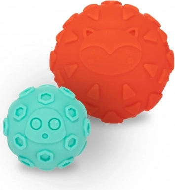 Soft sensory balls are designed primarily for fun and discovery in the first months of a baby’s life. These balls help parents support their baby’s development at a very early stage. The varied shapes and materials provide diverse sensory experiences. They allow babies to practice grasping and stimulate touch. Fresh, cheerful colors encourage little ones to be active and play. The balls can also be used for gentle massage. The set contains 6 balls in different colors, packed in an attractive gift box, and they are BPA-free. Intended for play and practicing grasping. They help train grip and develop motor skills — different shapes and textures create varied sensory effects. Cheerful, vibrant colors — encourage children to active play. The balls are an attractive accessory for gentle baby massage. Instructions for use: Keep clean; wash with a brush under running water using a mild detergent, and rinse thoroughly. Before first use, rinse with boiling water. Do not boil, do not sterilize. Warning! Important for your child’s safety and health! Check the product’s condition before each use. At the first signs of wear or damage, stop using the product and replace it with a new one. The product complies with the requirements of: Directive 2009/48/EC of the European Parliament and of the Council on the safety of toys. EN 71-1 Safety of toys — Part 1: Mechanical and physical properties. EN 71-2 Safety of toys — Part 2: Flammability. EN 71-3 Safety of toys — Part 3: Migration of certain elements.