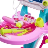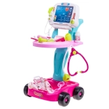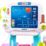 The interactive panel with light and sound effects simulates patient monitoring, while functional elements like the “blinking heart” on the stethoscope and the backlit readings on the thermometer and blood pressure monitor draw kids even deeper into play. The wheeled trolley makes it easy to move the whole set around.