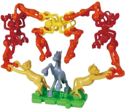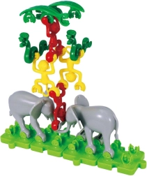 Monkeys, elephants, camels, and other pieces easily hook together to create fun chains and towers. Kids practice patience and structural stability.