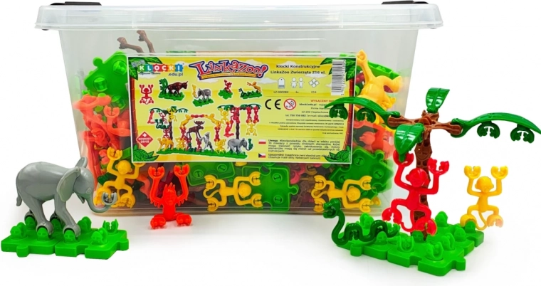 Discover the creative LinkaZoo building set with 216 pieces, where kids connect colorful animals, trees, lianas, and bases into balancing towers and imaginative scenes. The play develops fine motor skills, imagination, and creativity, is safe, and suitable for home and preschool.