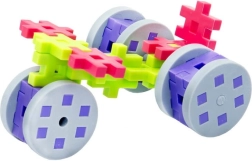 The set includes wheels and axles so kids can easily create cars and other rolling models.