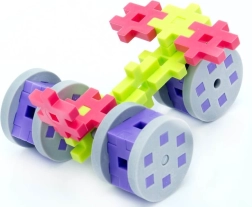 The set includes wheels and axles so kids can build drivable cars and other technical creations that develop both motor skills and logical thinking.
