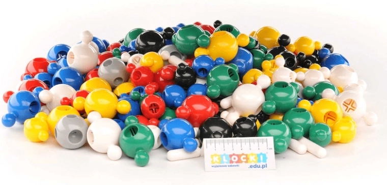 Multicolored connecting elements invite kids to build a variety of shapes and models and support learning through play.