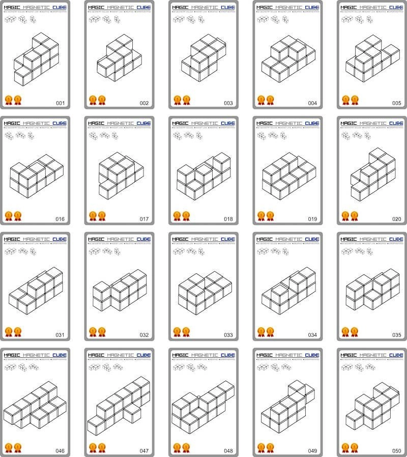 Note: Not all models can be built at the same time. Cube colors may differ from those shown on the cards.