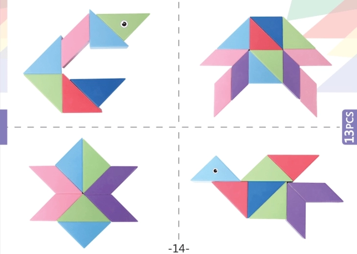 Discover a fun and educational game with a 60-piece magnetic tangram. Thanks to the magnets, constructions are stable and easy to assemble, supporting creativity, learning shapes and colors, and logical thinking. The lightweight, durable material and vibrant colors ensure long-lasting play from age 3.