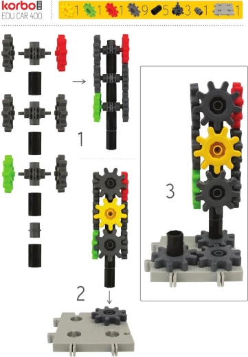 Korbo are creative building sets with gears where intuition alone is not enough—you need creative logical thinking. They are made from top-quality, safe material, packed in beautiful cardboard or plastic boxes, and are the perfect addition to any young builder’s room. Endless possibilities for constructing multidimensional models develop and entertain children of all ages. Movable gear mechanisms help children explore the principles of mechanics while developing spatial imagination and fine motor skills. Korbo sets are not only toys but above all a combination of teaching aids and great fun. Children reach for them eagerly—because they offer challenges and long-lasting, engaging play. The progressive models are a challenge, and the multitude of options allows children of all ages to find their own idea for especially creative time. All components connect easily, and the models are durable and mobile.