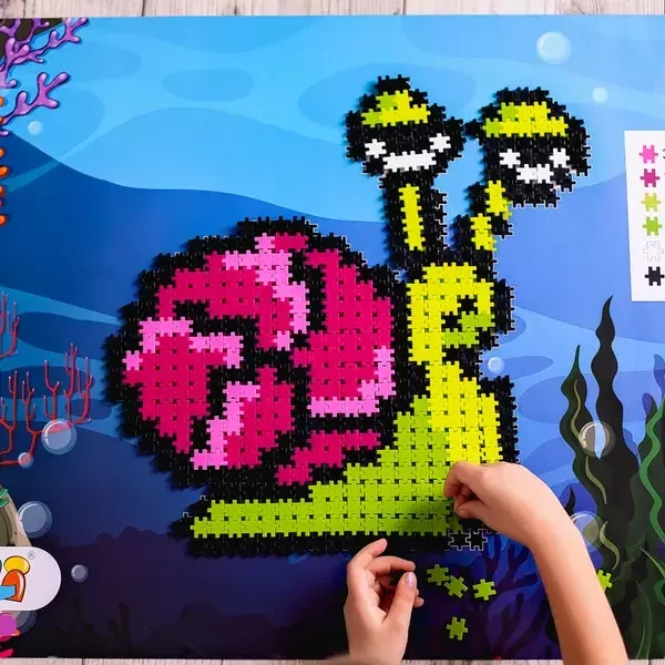 Discover the world of pixel building with the creative Meli Minis Shells 2-in-1 set. With 500 colorful pieces, kids can build a cute snail and turtle while developing fine motor skills, imagination, and focus. Thanks to the identical piece shape, the parts connect easily, the material is free from BPA, phthalates, and PVC, and the toy meets CE and EN-71 standards. A large 1:1 fold-out plan is included for easy template-based building.