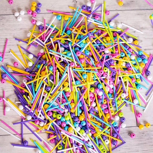 - 200 sticks (length approx. 8 cm) in pastel pink and blue, 100 white balls (diameter approx. 1.5 cm)