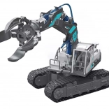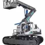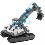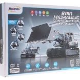 This educational construction kit introduces kids to the principles of hydraulics and mechanics through play. Using 223 components, you can build 6 functional models: an excavator, loader, fire truck with platform, crane, grapple, and bulldozer. All models share a 360° rotating superstructure and a tracked chassis with rubber tracks for smooth movement.