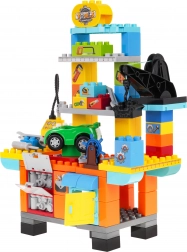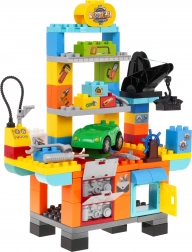 A colorful construction set for little tinkerers aged 3+ that turns any room into a creative workshop. It includes 92 pieces, including a toy car, functional elements, and tools. Kids will enjoy building, pretend mechanic play, and fine motor skills practice. It features a lift, a “compressor” for inflating tires, screwdriver and wrenches, opening cabinets, and colorful stickers for a personal touch.