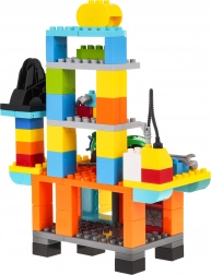 The set develops fine motor skills, logical thinking, and imagination. Safe, durable pieces in pleasant colors invite repeated building and mixing. Opening cabinets and decorative stickers give each creation a unique style.