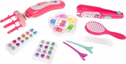 A well-equipped set with a hair braiding machine and a hair jewelry applicator, intended for children aged 6 and up. The set consists of 24 pieces. It includes a hair braiding tool and a bead applicator, plus a hairbrush, gems, and hair elastics. The braiding tool is powered by 2 AA 1.5 V batteries, which are not included. Using the braider is very simple: insert 3 strands of hair into the clips and slide the diamond-shaped button upward. Done! The bead applicator looks like a hair straightener and is not battery-powered. To apply a jewel to the hair, place the jewel on the top part of the tool and the stud in the bottom part. Then insert a strand of hair into the tool and press. Done! Both the jewels and studs can be reused. |