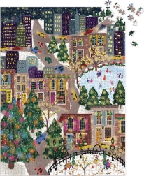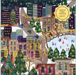 Discover a festive city scene full of colors, lights, and ice skaters. The puzzle features metallic foils on selected parts of the artwork for a unique sparkling effect that stands out under different lighting. An ideal gift for puzzle lovers and a charming winter home decoration.