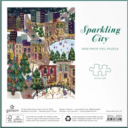 Enjoy a magical winter atmosphere with the 1000-piece Sparkling City puzzle, featuring pieces with a metallic sheen for gold and silver effects. Thanks to high-quality craftsmanship and precise piece cutting, assembly is smooth and fun, and the included poster makes orientation easier. Once completed, you get a decorative picture measuring approx. 51 × 69 cm.