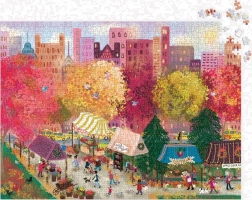 Puzzle Autumn at the City Market with 1000 pieces from the brand Galison brings autumn atmosphere directly into your home. Enjoy high-quality materials and precise image details by Joy Laforme.