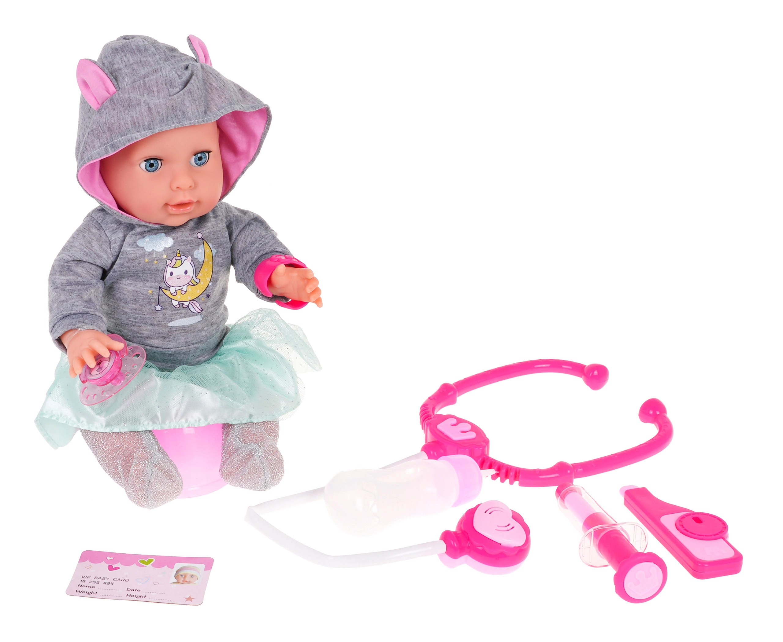 This toy supports the development of responsibility and caregiving. The set includes a magnetic pacifier and medical accessories so your child can play doctor. Batteries are not included (3 x AA 1.5V for the doll and 2 x AG13 for the stethoscope).