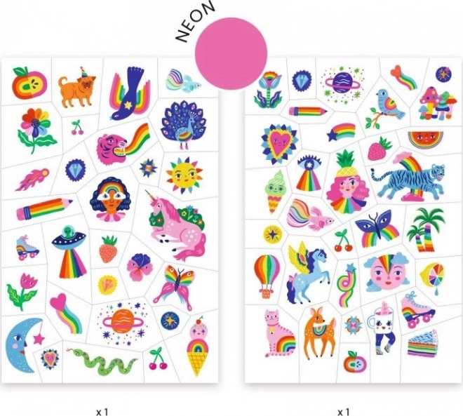 DJECO Temporary Rainbow Tattoos for Children, 2 Sheets (50+ Designs)