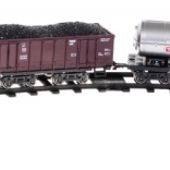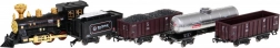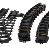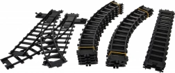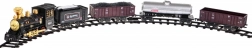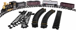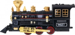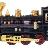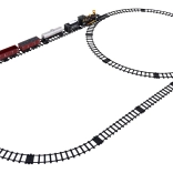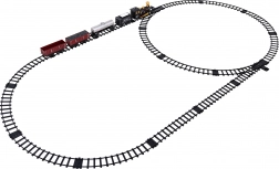 This train set offers an elliptical track with dimensions approximately 213 cm by 106 cm. During the ride, the locomotive emits smoke from the chimney after refilling with water (pipette included) and the front light shines. Easy connection of the track ensures safe and durable usage. The set includes:
