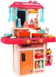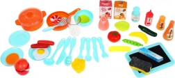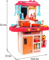 Overall, the kitchen offers 42 diverse elements for maximum creativity and play. The set includes various tools like pots, pans, and fake food, providing endless role-playing opportunities.
