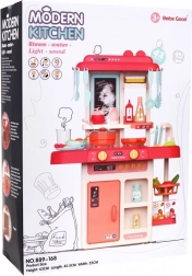 The children's kitchen Modern Kitchen gives kids the opportunity to experience a real kitchen adventure with real lights and sounds. It includes movable elements such as turning knobs and an opening refrigerator. Little chefs will also appreciate the steam release function and a record indicator on the recorder.