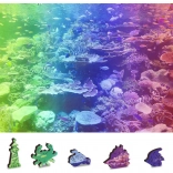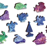 Selected pieces are shaped like sea animals and objects. Laser-etched accents give the figurines character and enhance the puzzling experience.