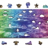 The wooden puzzle Coral Reef 2-in-1 delivers a unique assembling experience – on one side you assemble by the colorful motif, on the other by shapes with a repeating pattern. Some pieces have original shapes of animals, objects, or buildings, and thanks to laser-highlighted details they feel like small standalone figurines.