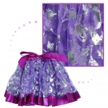 The purple skirt with shiny silver patterns and an elastic waistband easily adapts to different body types.