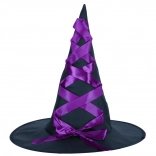The black and purple hat with a distinctive crossed purple ribbon adds authenticity to the costume.