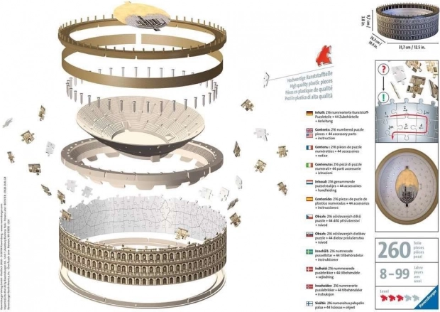 Do you enjoy assembling puzzles and are looking for a new challenge? With the model of the famous Roman amphitheater from RAVENSBURGER, you will experience hours of fun thanks to the special plastic pieces with Easyclick technology.