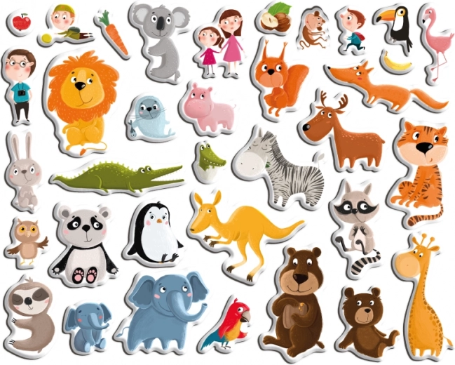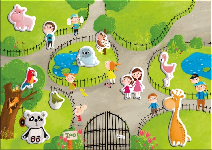 - 35 magnetic elements with zoo animals for endless combinations of play scenes.