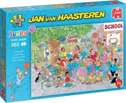 Discover the playful and witty puzzle from the JAN VAN HAASTEREN JUNIOR series with the Class Photo motif and 360 pieces. Enjoy colorful illustrations, plenty of comic details, and iconic elements like the shark fin. Ideal for long moments of fun for kids and parents alike.