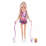 The doll is dressed in colorful clothing with a dog-walking theme, sure to capture children's attention.