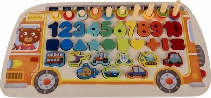 The offered puzzle set is great fun for creative children. It is made from a natural material, wood, whose beauty and durability everyone will appreciate. This material looks very good both in its natural state and when painted. The set includes many colorful pieces from which a child can create various patterns.