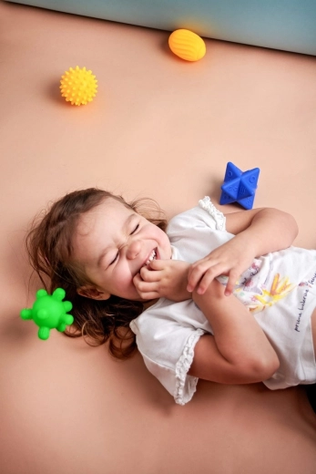 The Sensorky set offers varied shapes, bumps, and bold colors for rich sensory input. Each ball has a different texture that promotes shape recognition, grasping, and focus. Thanks to the soft material, the balls are pleasant to squeeze and are suitable even for the smallest children.