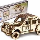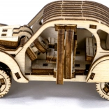 This rally car model offers an engaging mix of creative fun and elegant home decor. The parts made from premium birch plywood fit together precisely — no glue or screws — resulting in an impressive retro car packed with fine details.